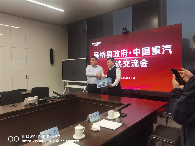 2025 年 12 月,吴桥县政府与中国重汽的座谈交流会顺利开展。山东润翔投资有限公司崔文刚及河北吴桥县崔县长一行到访中国重汽集团,围绕合作项目展开洽谈交流,双方就相关合作事宜进行了现场对接。