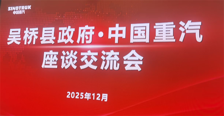 2025 年 12 月,吴桥县政府与中国重汽的座谈交流会顺利开展。山东润翔投资有限公司崔文刚及河北吴桥县崔县长一行到访中国重汽集团,围绕合作项目展开洽谈交流,双方就相关合作事宜进行了现场对接。